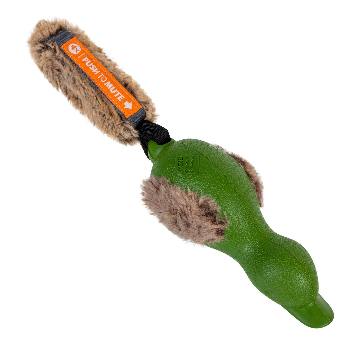 ІГРАШКА ДЛЯ СОБАК КАЧКА З ВІДКЛЮЧАЮЧИМ ХАРЧОВКОЮ GIGWI PUSH TO MUTE, ГУМА, Штучне хутро, 30 см