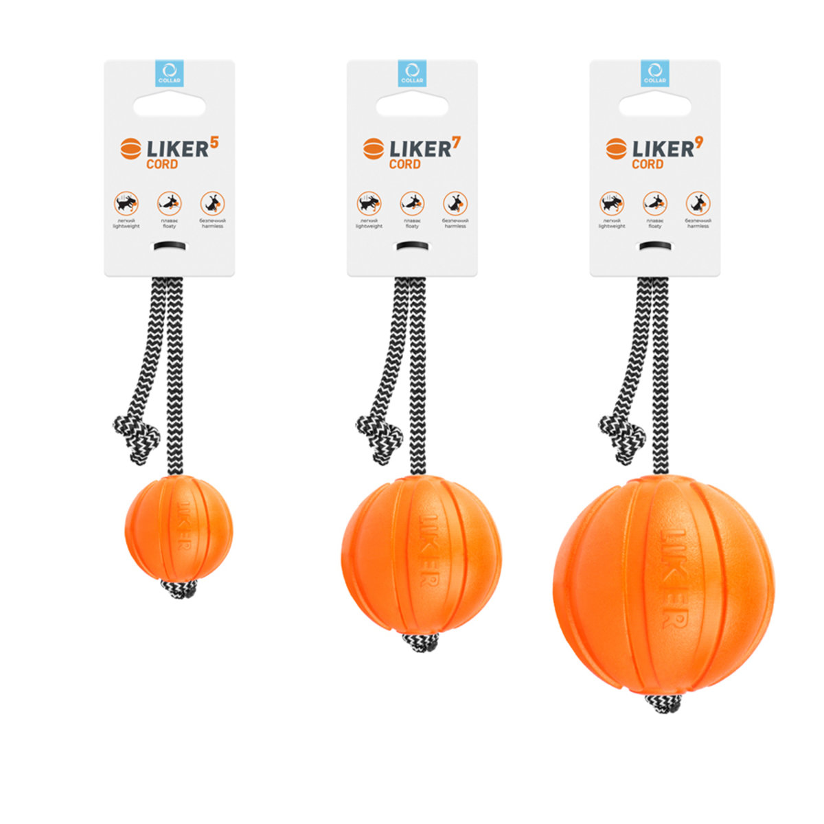 М'ячик Liker Cord для заохочення та підвищення ігрової мотивації цуценят та собак різних порід. Представлений у трьох розмірах. Надійний та безпечний прогумований шнур.