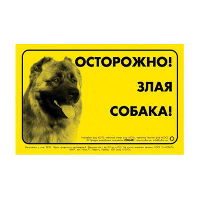 6029 Наклейка "ОБЕРЕЖНО, ЗЛИЙ ПІС" кавказька вівчарка