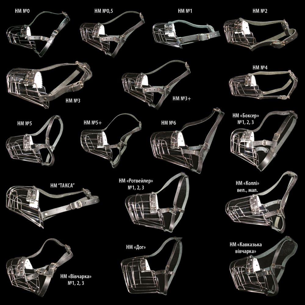Намордники відрізняються своєю будовою і розміром. Доступні для різних порід в наступних варіаціях:
