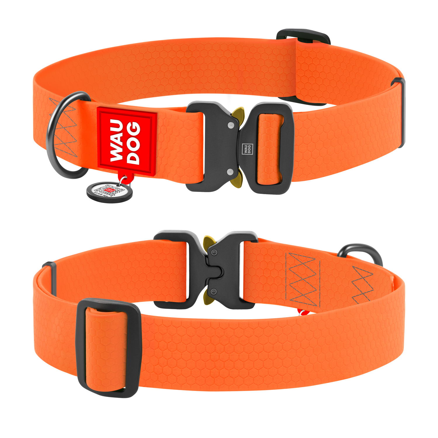 Нашийник для собак водостійкий WAUDOG Waterproof з QR-паспортом, металева пряжка-фастекс, Ш 15 мм, Дл 23-35 см, оранжевий