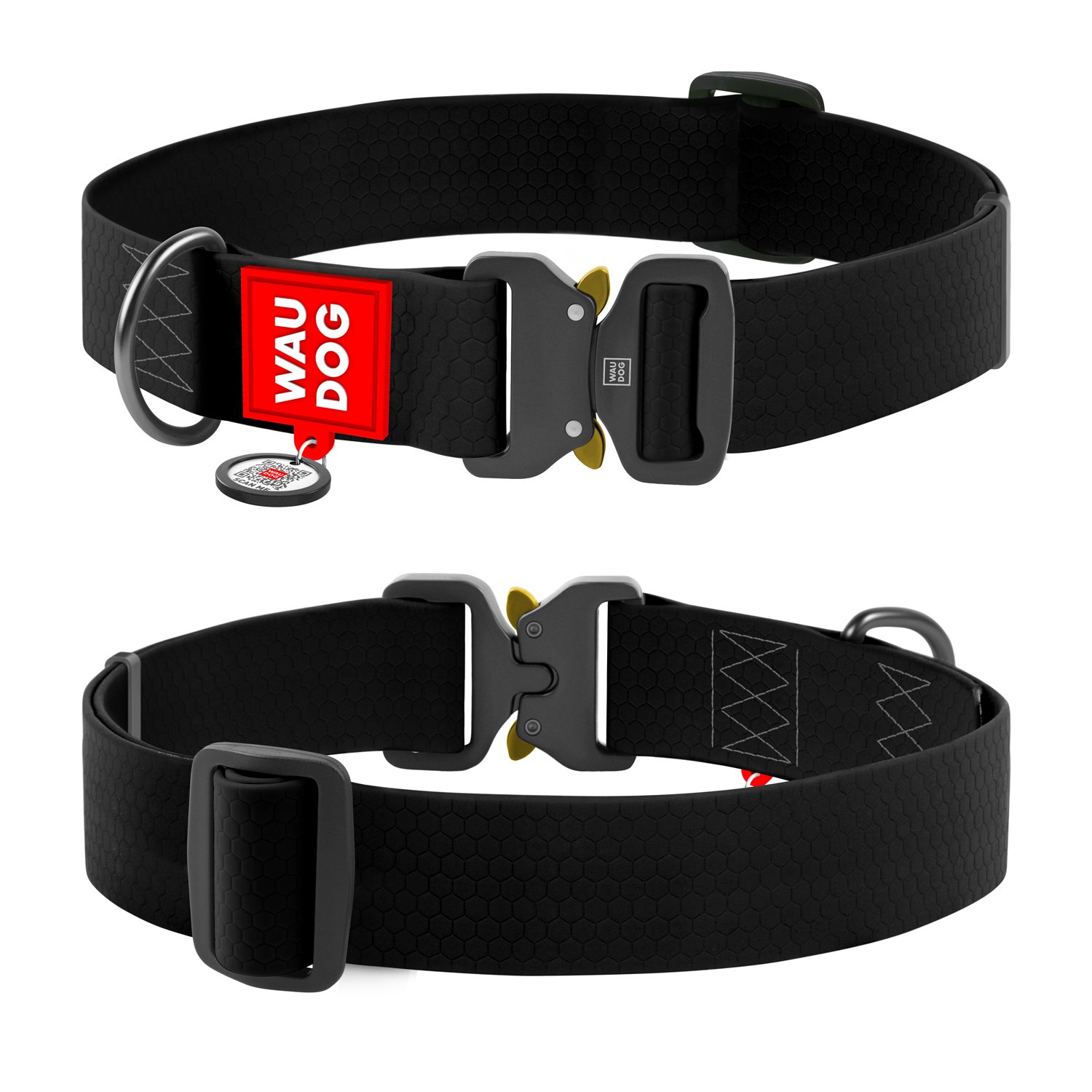 Нашийник для собак водостійкий WAUDOG Waterproof з QR-паспортом, металева пряжка-фастекс, Ш 25 мм, Дл 35-58 см, чорний -317 грн