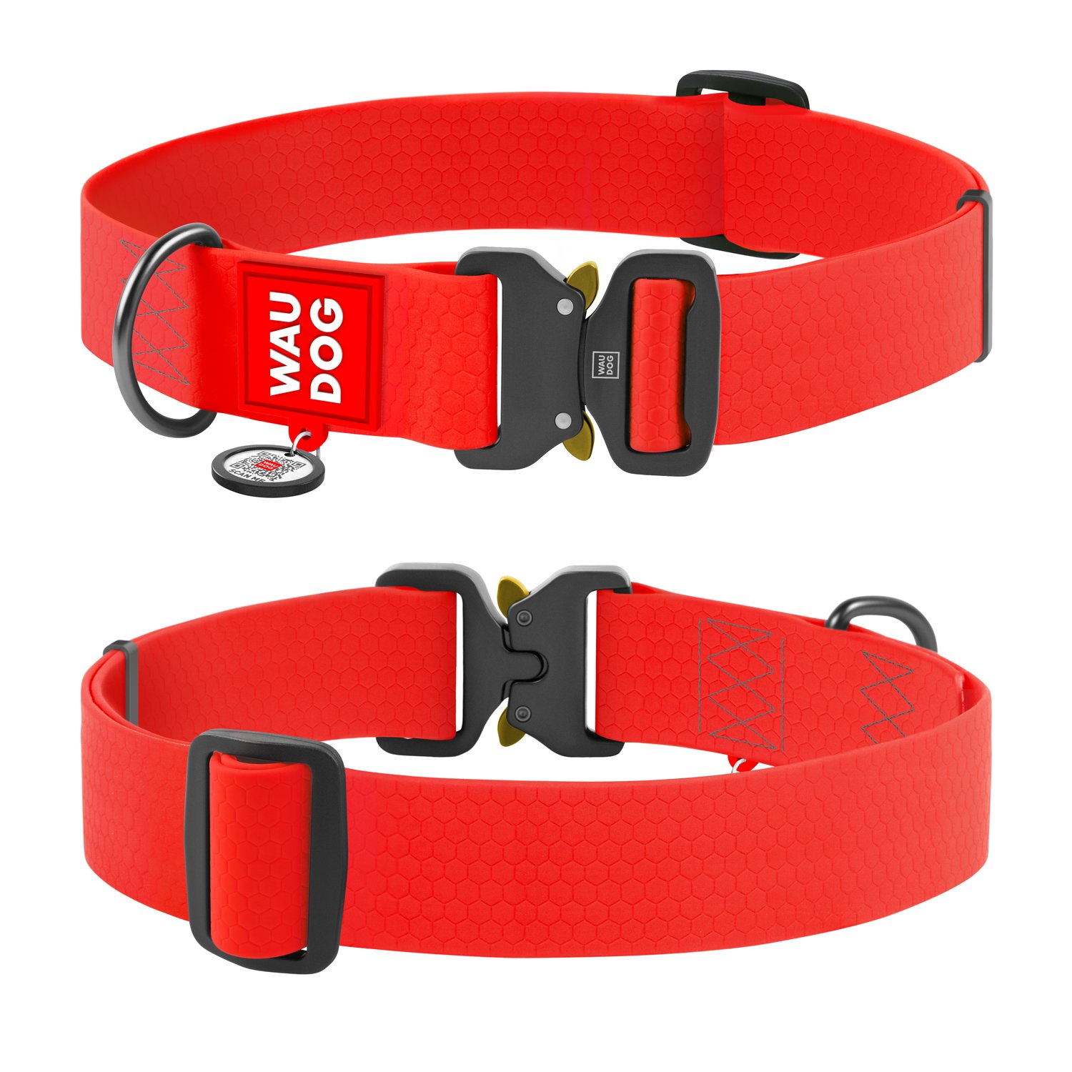 Нашийник для собак водостійкий WAUDOG Waterproof з QR-паспортом, металева пряжка-фастекс, Ш 25 мм, Дл 31-49 см, червоний - 308 грн
