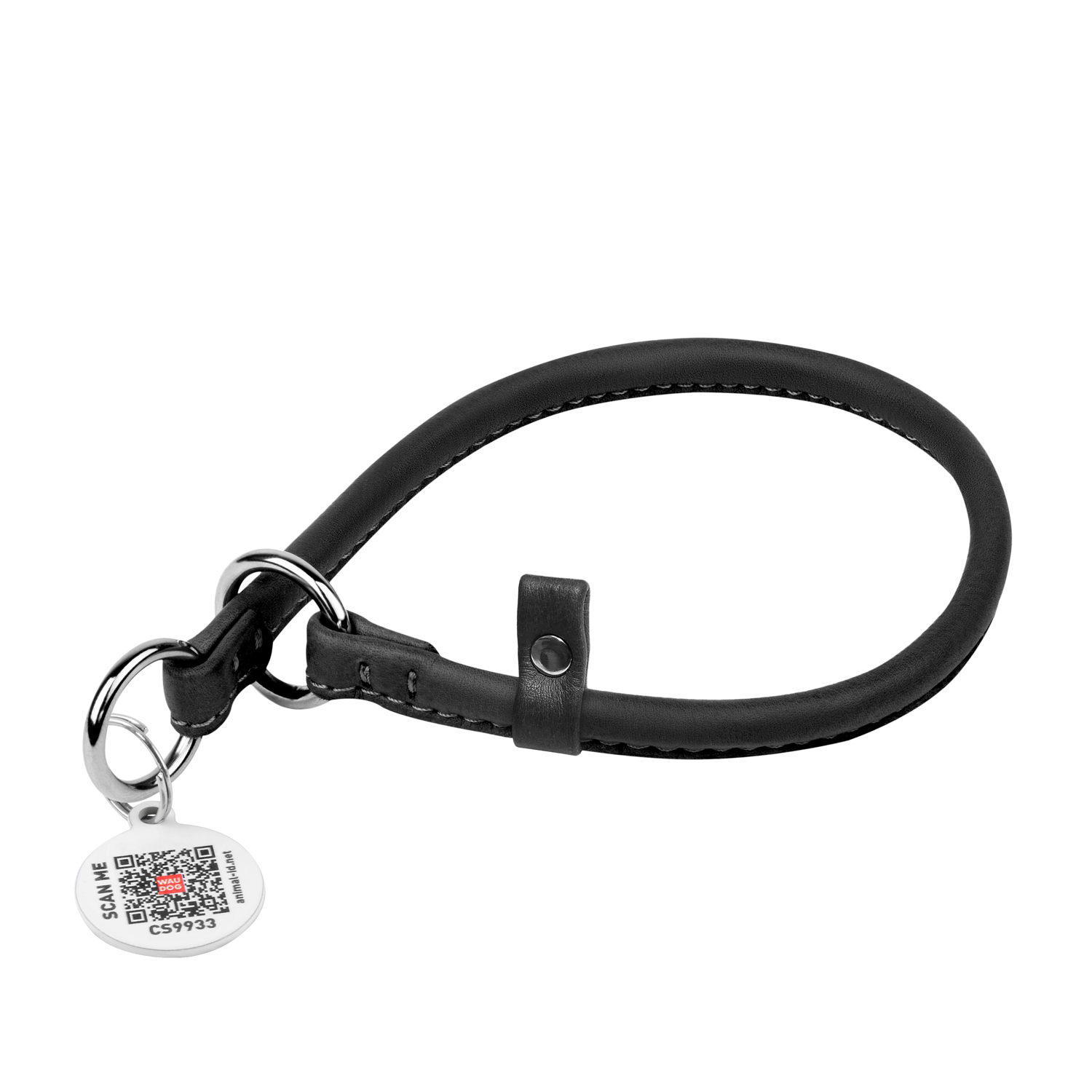 Нашийник-зашморг ривковий для собак шкіряний WAUDOG Soft з QR паспортом, круглий, Д 10 мм, Дл 50 см, чорний -232 грн