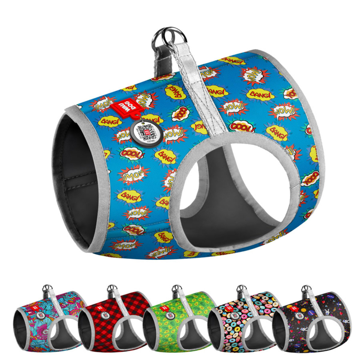 Шлея для собак м'яка WAUDOG Clothes з QR паспортом, малюнок XS1