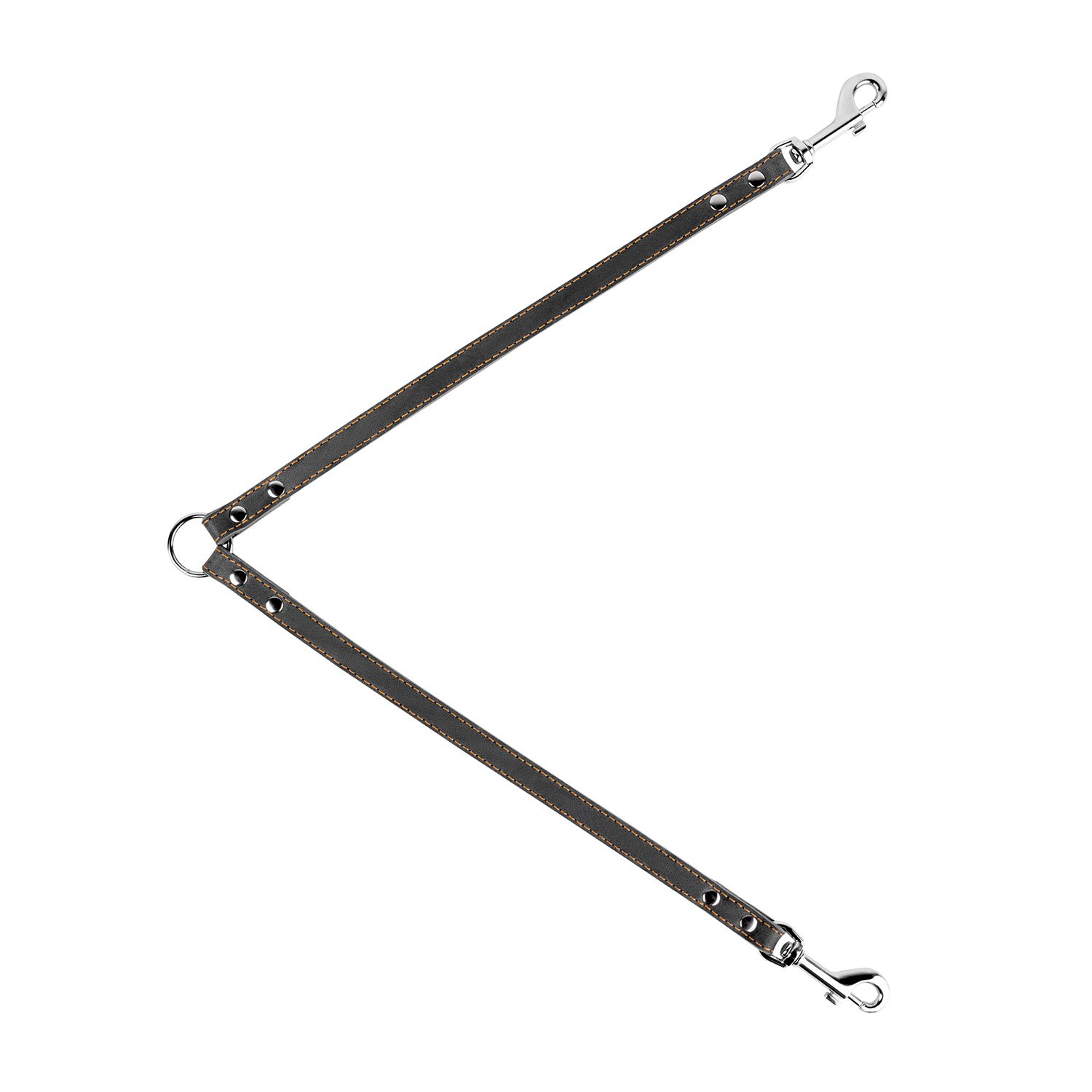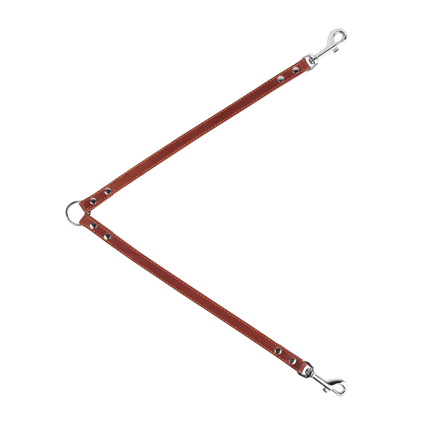 Звіряння - це роздвоєний повідець з двома карабінами, кінці цих повідків з'єднані одним кільцем, до якого пристібається основний повідець. Виготовлена з натуральної шкіри.