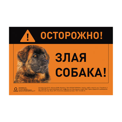 5295 Табличка "ОБЕРЕЖНО, ЗЛИЙ ПЕС" нім. овчарка полноцвет