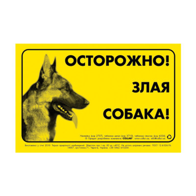3710 Табличка "ОСТОРОЖНО, ЗЛАЯ СОБАКА" нем. овчарка