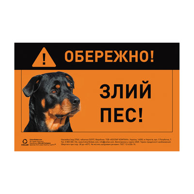 5297 Табличка "ОБЕРЕЖНО, ЗЛИЙ ПЕС" ротвейлер полноцвет
